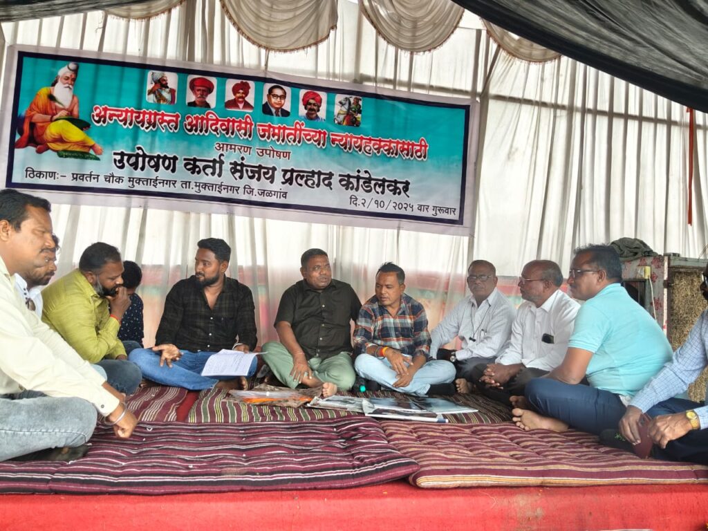 मुक्ताईनगर/जळगाव || ०५ सप्टेंबर २०२५ || {कैलास कोळी}-: दसऱ्याच्या शुभमुहूर्तावर संपूर्ण महाराष्ट्रात आनंद आणि उत्साहाचे वातावरण असताना, कोळी आदिवासी समाजाचे नेते श्री. संजय भाऊ प्रल्हाद कांडेलकर यांनी आपल्या समाजाच्या न्यायहक्कासाठी मुक्ताईनगर येथे बेमुदत आमरण उपोषण सुरू केले आहे.
