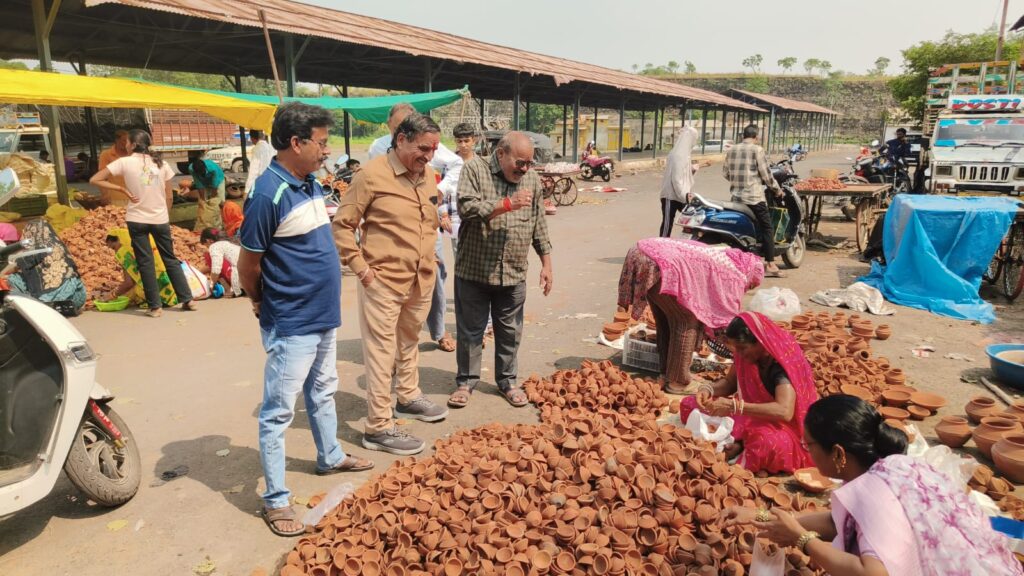 स्वदेशी अपनाओ अभियान के तहत नपा उपाध्यक्ष व भाजपा पदाधिकारियों ने खरीदे मिट्टी के दीप व झाड़ू..